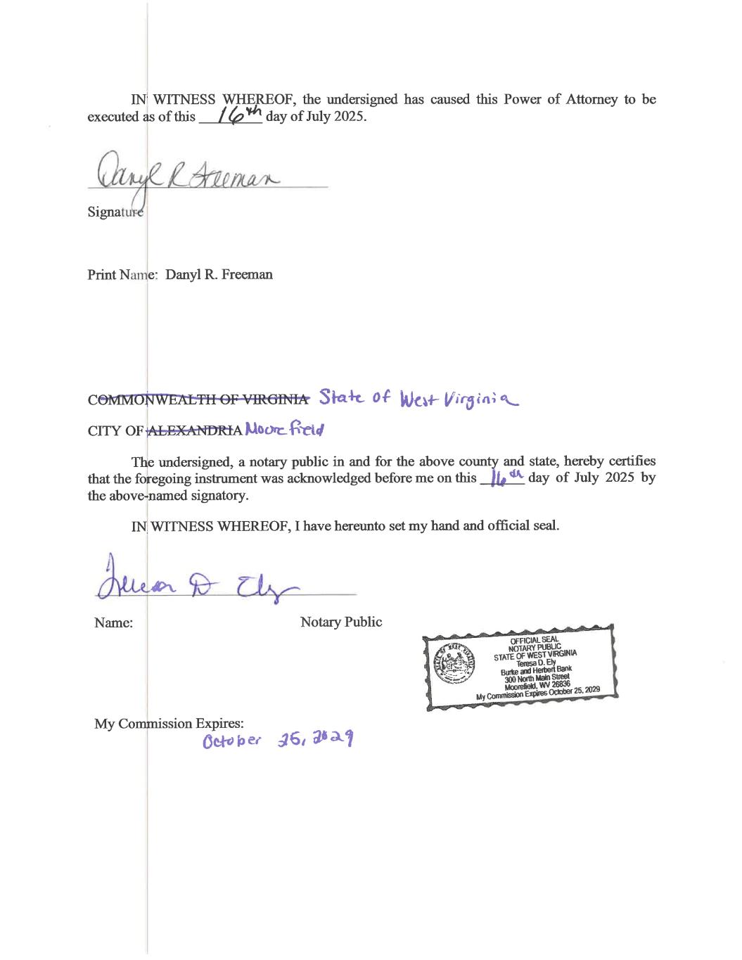 2 undersigned hereby authorizes any such third party to release any such information to the Attorney-in-Fact. The undersigned acknowledges that: (a) This Power of Attorney authorizes, but does not require, the Attorney-in-Fact to act in his or her discretion on information provided to such Attorney-in-Fact without independent verification of such information; (b) Any documents prepared or executed by the Attorney-in-Fact on behalf of the undersigned pursuant to this Power of Attorney will be in such form and will contain such information as the Attorney-in-Fact, in his or her discretion, deems necessary or desirable; (c) Neither the Company nor the Attorney-in-Fact assumes any liability for the undersigned’s responsibility to comply with the requirements of Section 13 or Section 16 of the Exchange Act or Rule 144, any liability of the undersigned for any failure to comply with such requirements, or any liability of the undersigned for disgorgement of profits under Section 16(b) of the Exchange Act; and (d) This Power of Attorney does not relieve the undersigned from responsibility for compliance with the undersigned’s obligations under Section 13 or Section 16 of the Exchange Act, including, without limitation, the reporting requirements under Section 13 or Section 16 of the Exchange Act. The undersigned hereby grants to the Attorney-in-Fact full power and authority to do and perform each and every act and thing requisite, necessary or advisable to be done in connection with the foregoing, as fully, to all intents and purposes, as the undersigned might or could do in person, hereby ratifying and confirming all that the Attorney-in-Fact, or his or her substitute or substitutes, shall lawfully do or cause to be done by authority of this Power of Attorney. This Power of Attorney shall remain in full force and effect until the undersigned is no longer required to file Forms 4 or 5 or Schedules 13D or 13G or Forms 144 with respect to the undersigned’s holdings of and transactions in securities of the Company, unless earlier revoked by the undersigned in a signed writing delivered to the Attorney-in-Fact. This Power of Attorney revokes all previous powers of attorney with respect to the subject matter of this Power of Attorney. [remainder of page intentionally blank; signature page to follow]